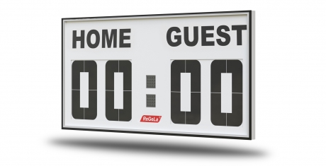 The remote control FB M3 is additionally equipped for the control of the playtime. It is equivalent to a smart phone concerning its size and weight and the operation is very easy! This radio remote control is part of the standard features of every ReGeLa sports scoreboard with playing time.